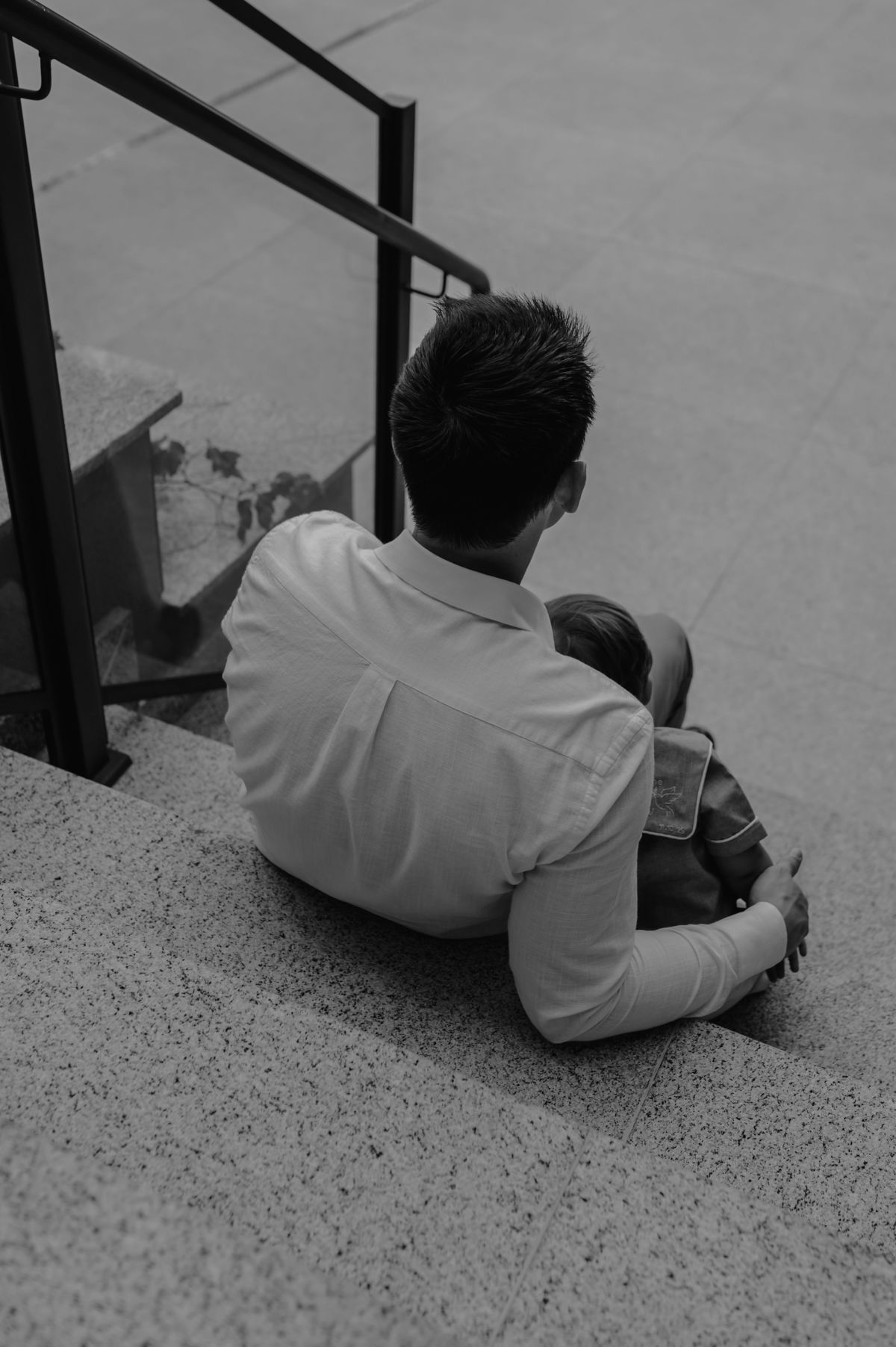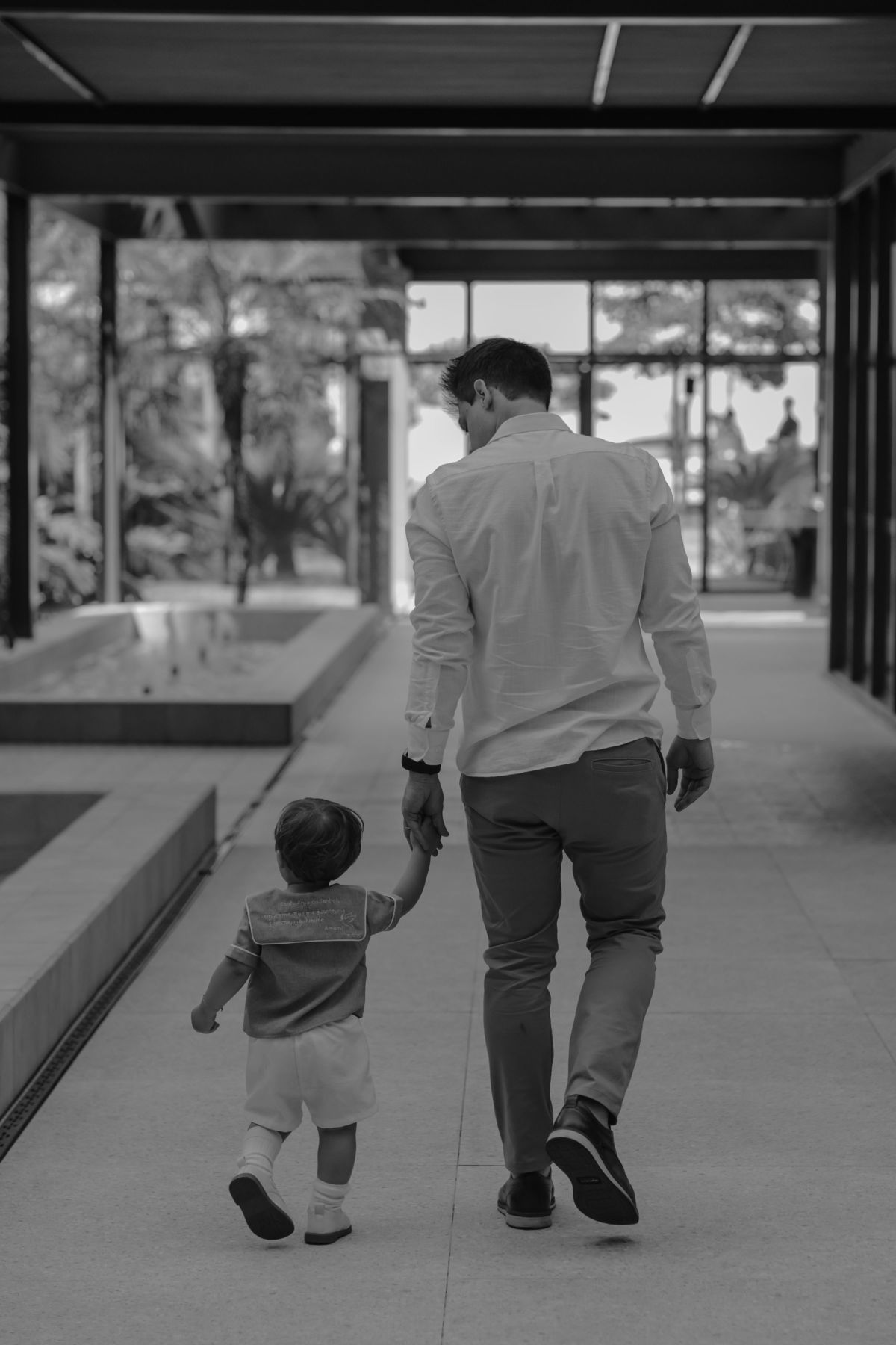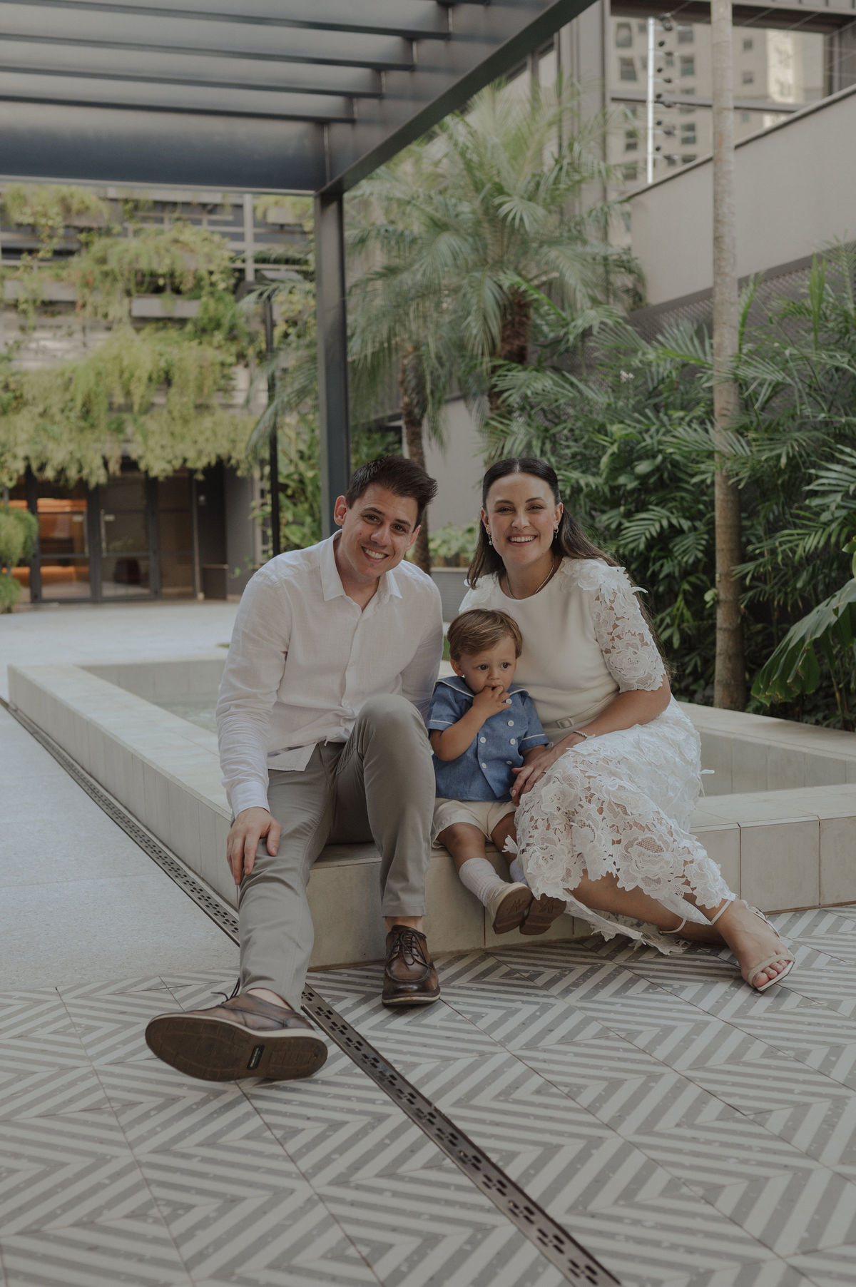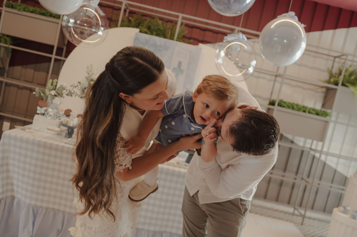 A fotografia documental revela não apenas o rito sagrado, mas a tensão doce e a esperança nos olhos dos pais e padrinhos, que o guiam neste primeiro passo espiritual. Um registro da proteção e do amor incondicional que o acolhe, prometendo sustentar sua jornada.