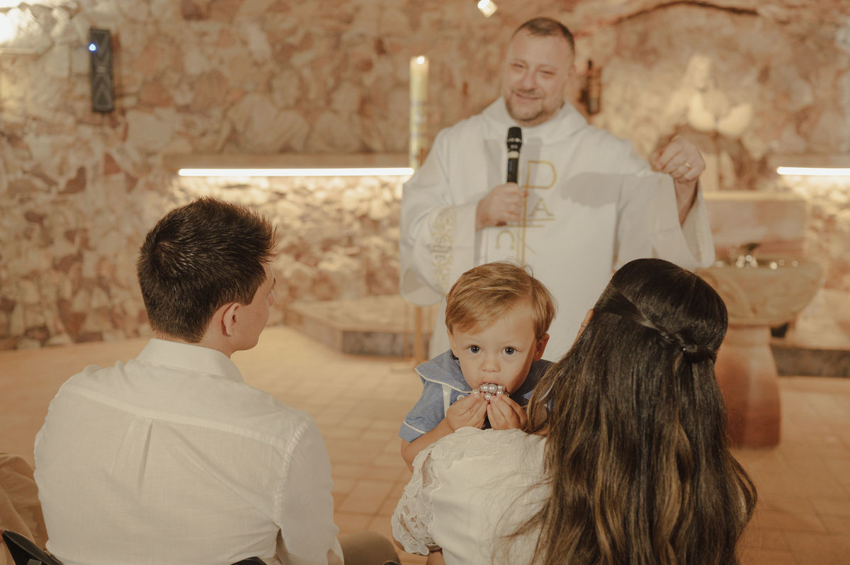 A Capela de Pedra da Paróquia Auxiliadora, em Londrina, com sua beleza que transcende o tempo, foi o cenário perfeito para um momento de pura e inesquecível emoção: o batismo do João Vicente.